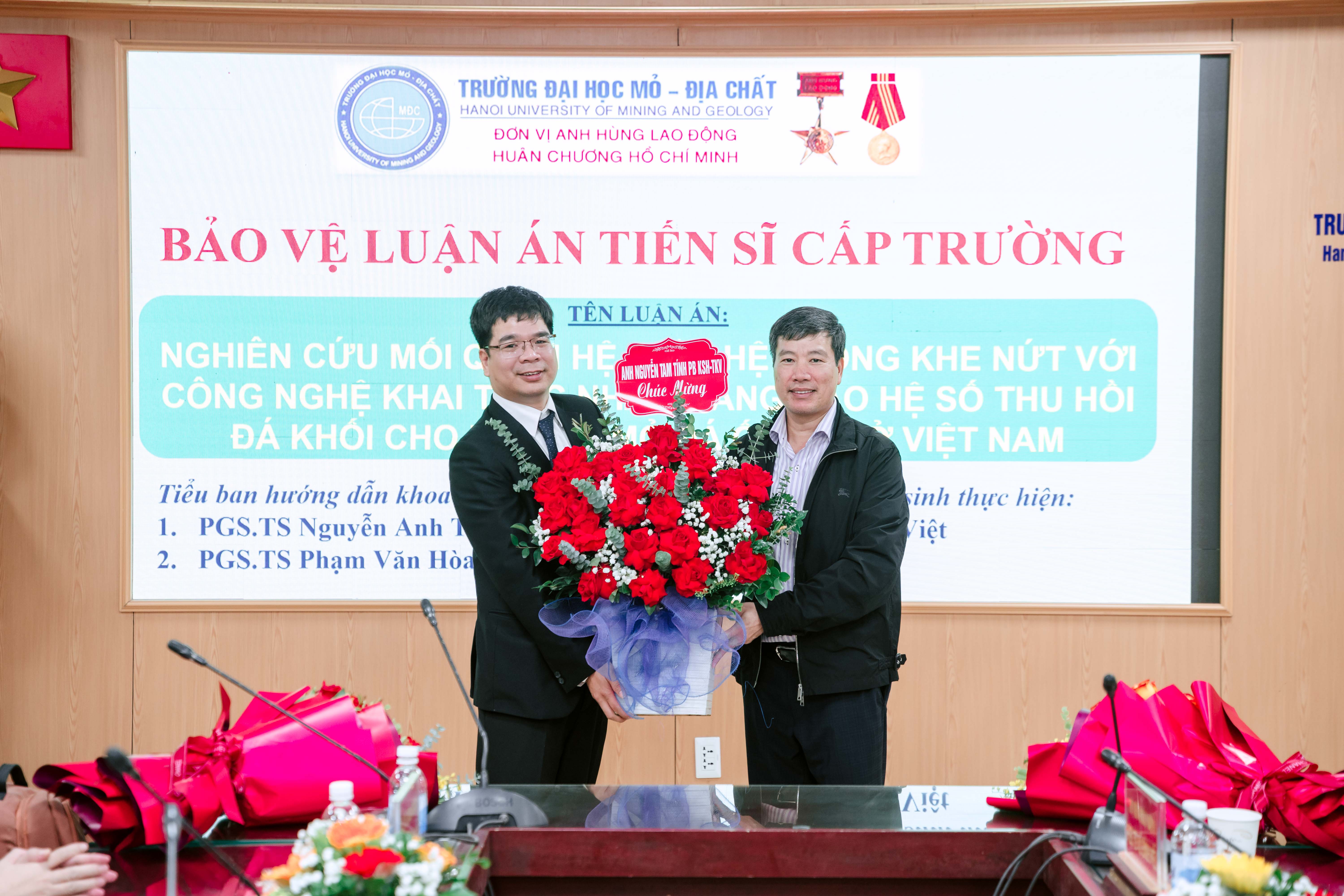 Sau một thời gian làm việc nỗ lực trên tinh thần nghiêm túc, khách quan với kết quả 6/7 phiếu đánh giá xuất sắc của các thành viên Hội đồng, NCS. Phạm Văn Việt đã chính thức trở thành Tân Tiến sĩ chuyên ngành Khai thác mỏ lộ thiên.