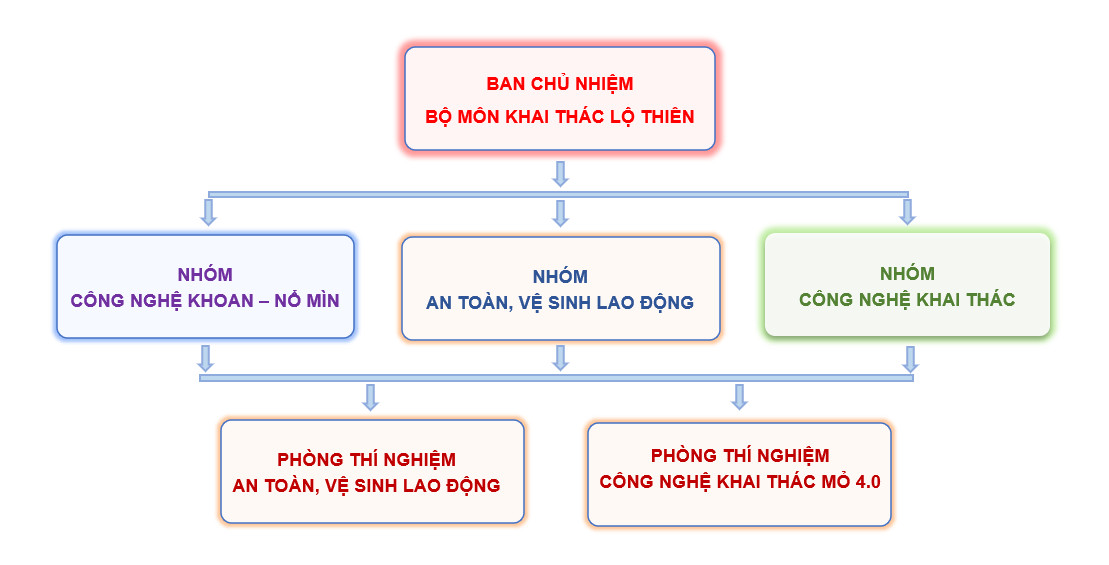 Hiện tại, Bộ môn KTLT có 12 giảng viên, trong đó có: 03 GVCC.PGS.TS, 06 GVC.TS, 01 GVC ThS (NCS), 01 GV. ThS (NCS) và 01 GV.ThS. Bộ môn KTLT có 03 nhóm chuyên môn: Công nghệ Khai thác mỏ; Công nghệ Khoan - Nổ mìn và An toàn, vệ sinh lao động.